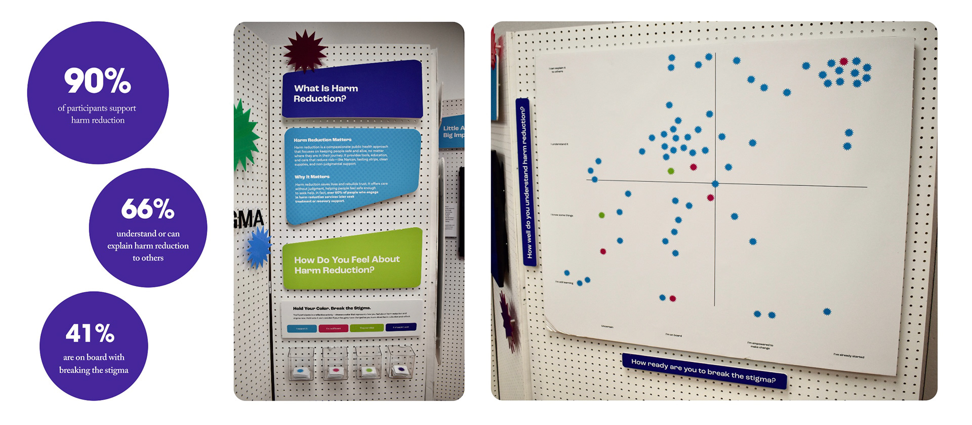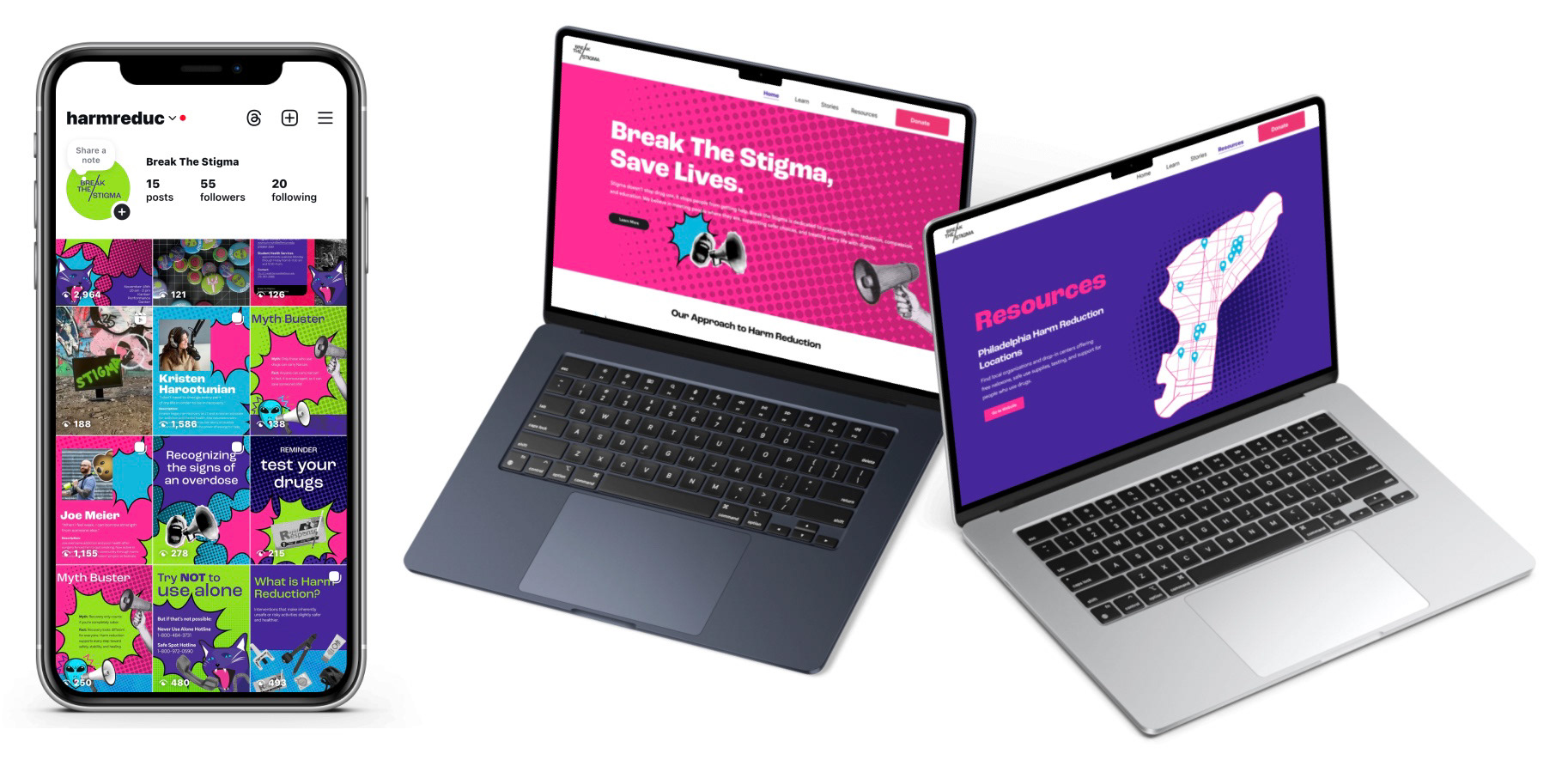 Break the Stigma is a comprehensive harm reduction educational campaign combining physical and digital touch-points to reduce stigma and raise awareness among students and the general public. Funded through a Smart and Healthy Cities grant, the project featured a pop-up booth with environmental signage, interactive components, and branded merchandise, alongside a coordinated social media campaign, educational website, and digital game—creating a cohesive experience that meets people where they are with compassion and practical tools.